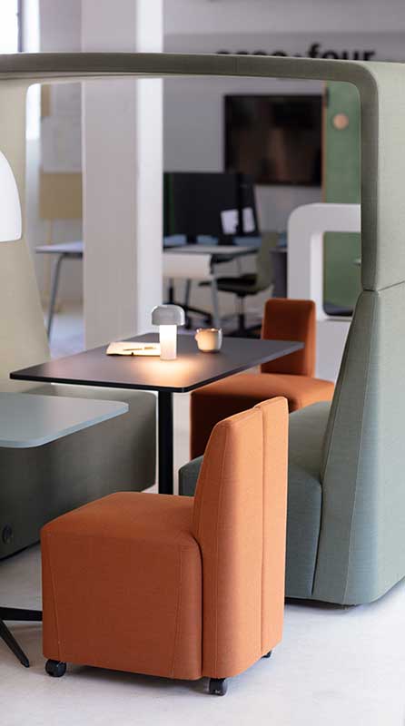 Conçue pour s’adapter aux besoins de chacun, cette cabine offre un espace de travail polyvalent. Dans les bureaux où les salles de réunion se font rares, elle devient une véritable bulle. On peut s’y retrouver à plusieurs, s’y concentrer seul ou y tenir une conversation discrète.