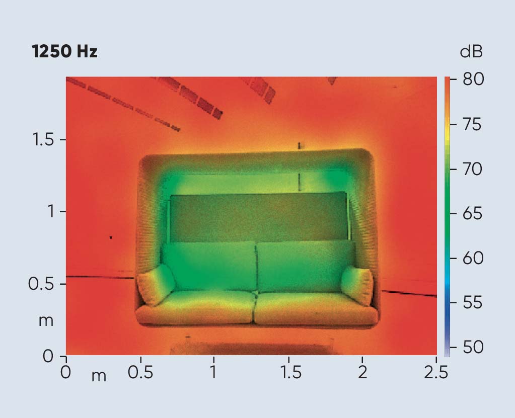 Dans une pièce à forte réverbération, 60 % des ondes sonores réfléchies proviennent du plafond. C’est pourquoi Privée ne se contente pas d’un dossier et de parois latérales hauts : elle intègre également un auvent, conçu pour renforcer ses performances acoustiques.
