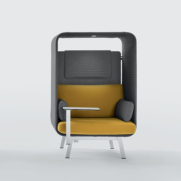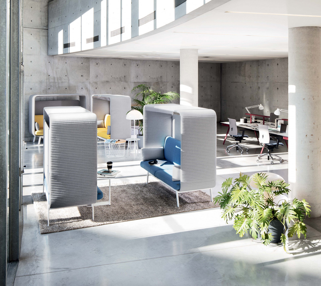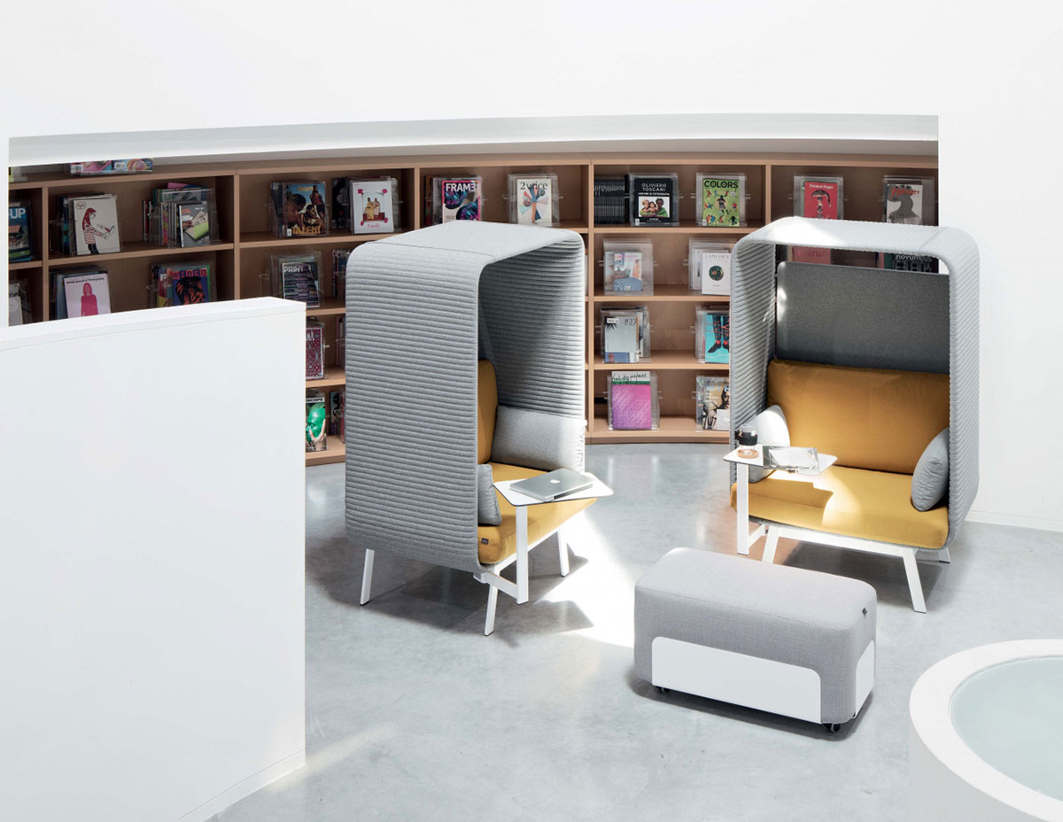 Avec ses lignes élégantes et ses formes enveloppantes, Privée incarne le confort raffiné. Sa signature : des auvents protecteurs à la structure légère, qui créent une atmosphère feutrée, favorisent la concentration et garantissent un excellent confort acoustique.