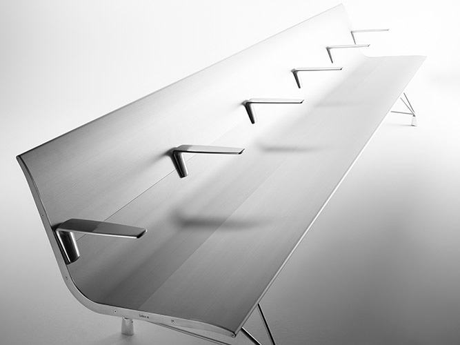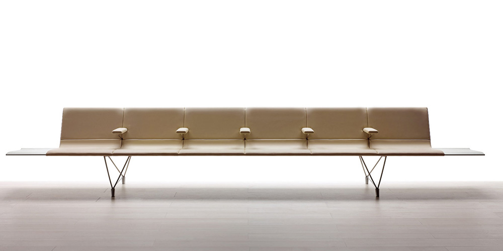 Le Banc AERO incarne une subtile alliance entre minimalisme, légèreté, confort et robustesse. Son design unique s’inspire de l’aéronautique, grâce à l’utilisation de profils en aluminium strié qui évoquent la silhouette d’une aile d’avion. Conçu en aluminium et en acier inoxydable, il s’adapte parfaitement aussi bien aux espaces intérieurs qu’aux environnements extérieurs. Conçu par Lievore Altherr Molina, est une solution d’assise polyvalente destinée aux salles d’attente, terminaux passagers, églises et funérariums, hôpitaux ou encore auditoriums. Ce programme se distingue par la richesse de ses options, aussi bien en termes de modèles, de dimensions que de finitions.