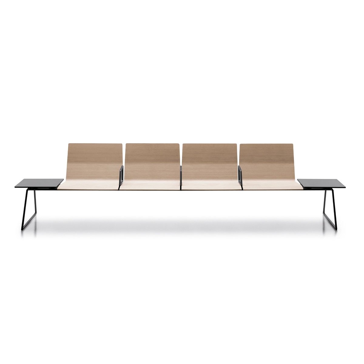 Le programme de sièges modulaires d’attente BILDU offre des configurations de 1, 2, et 4 places, avec ou sans accoudoirs, positionnables librement. Il intègre également des tablettes latérales, d’angle ou d’extension. Les finitions disponibles incluent le bois naturel, le bois teinté ou des assises tapissées.