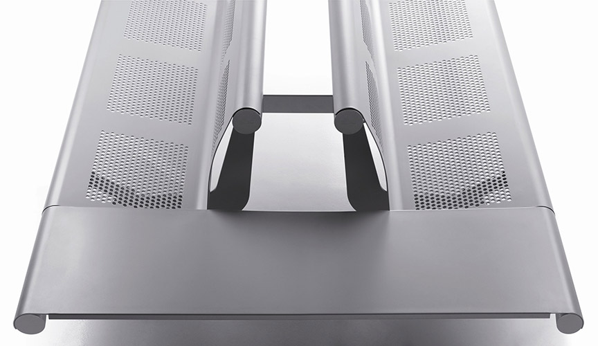 Le banc Vacante a été voulu comme un produit simple et de grande robustesse qui en nécessitant un minimum de supports permette une longévité d’utilisation intensive en milieu public.