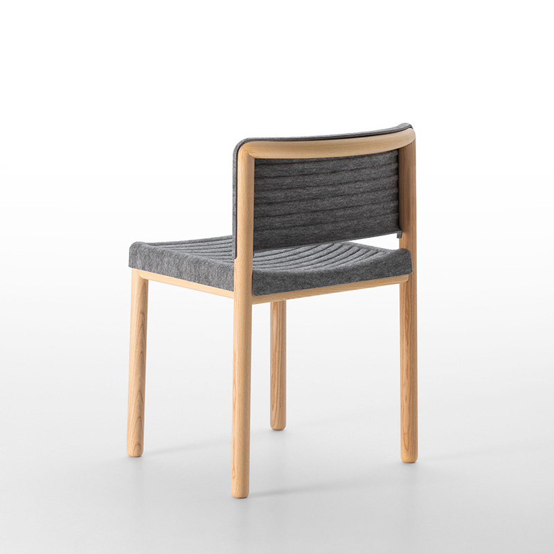 Cadre en bois massif. Assise et dossier en feutre thermoformé.
